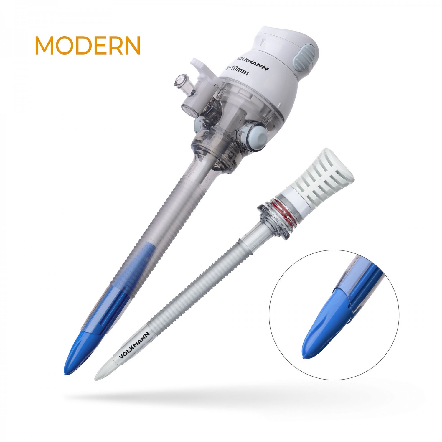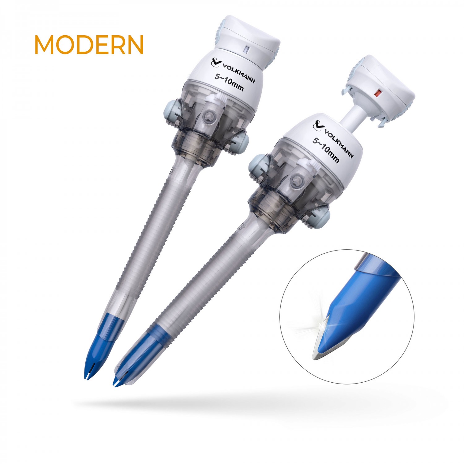 Троакары с лезвием из нержавеющей стали с двусторонней заточкой гарантирует легкое введение и быстрое заживление троакарной раны. Автоматически закрывающийся защитный кожух предотвращает повреждение внутренних органов при попадании троакара в брюшную полость. На крышке обтуратора расположена кнопка, с помощью которой можно активировать лезвие. У лезвийных троакаров линейки MODERN есть специальный защитный индикатор на крышке стилета для предотвращащения случайного повреждения внутренних органов и сосудов при активации лезвия.